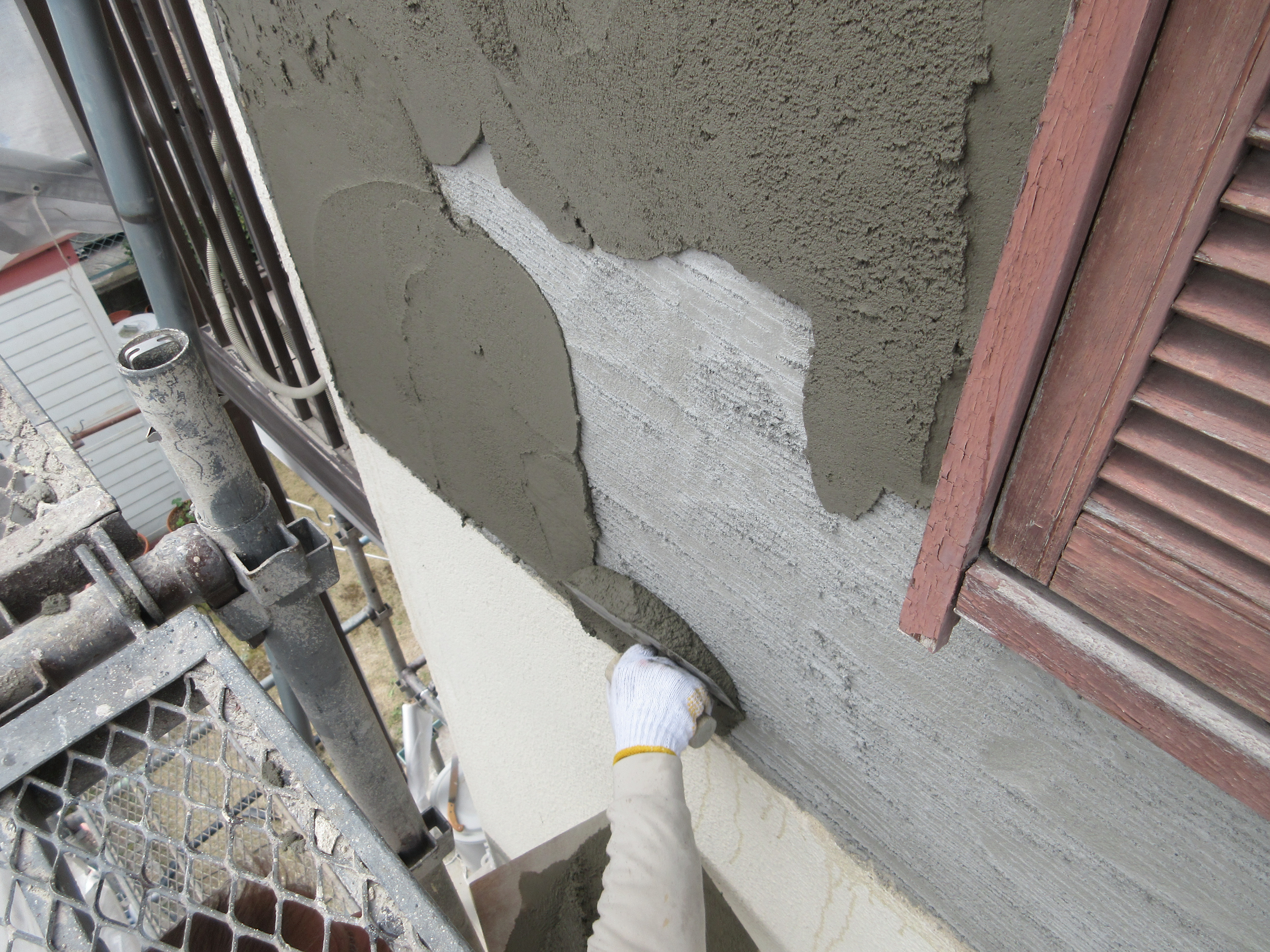 修繕工事は、年数劣化のためモルタルが浮いていました。
