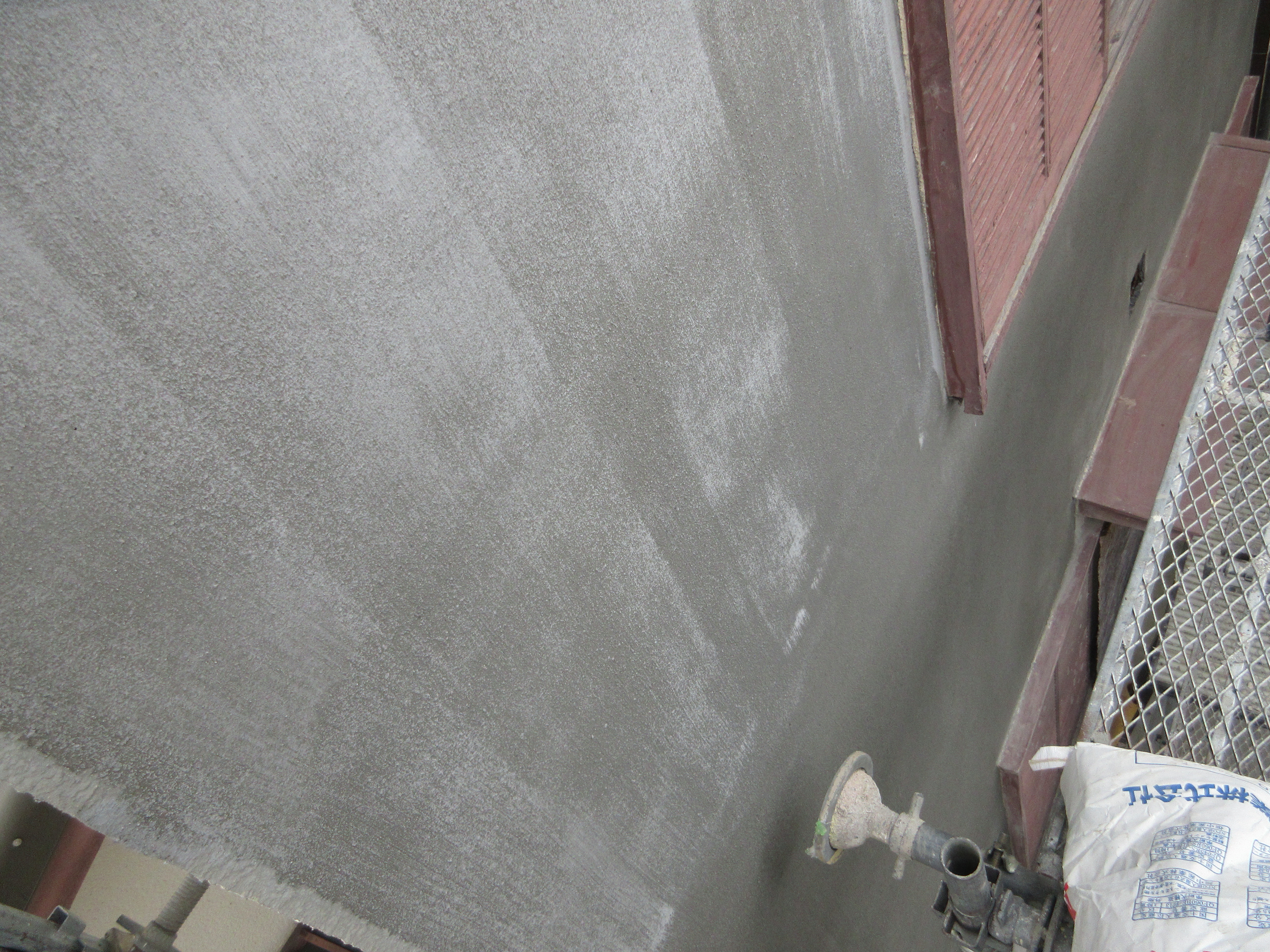 もう一度新しいラス網を取り付け、モルタルを2回塗りしました。