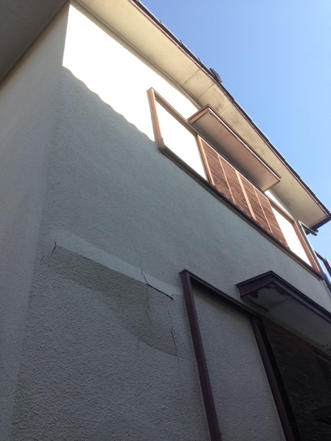 浮きの為、一部欠落してモルタル壁が落ちていました。