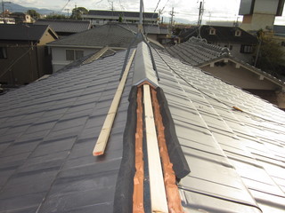 今回の屋根は下地がしっかりしていたので、垂木等の取り替えはなかったのですが、